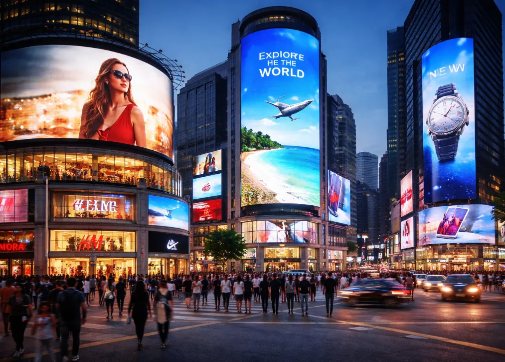 Специализированные LED-экраны для городской наружной рекламы обладают высокой яркостью: даже при прямом солнечном свете изображение остаётся чётким и разборчивым. Это достигается благодаря яркости свыше 5000 нит, что обеспечивает отличную видимость как с близкого, так и с дальнего расстояния. Кроме того, в зависимости от дистанции просмотра можно выбрать экран с соответствующим шагом пикселей, а размер экрана — подобрать исходя из реальных условий. Такой подход позволяет эффективно контролировать затраты и добиться наилучшего визуального результата.